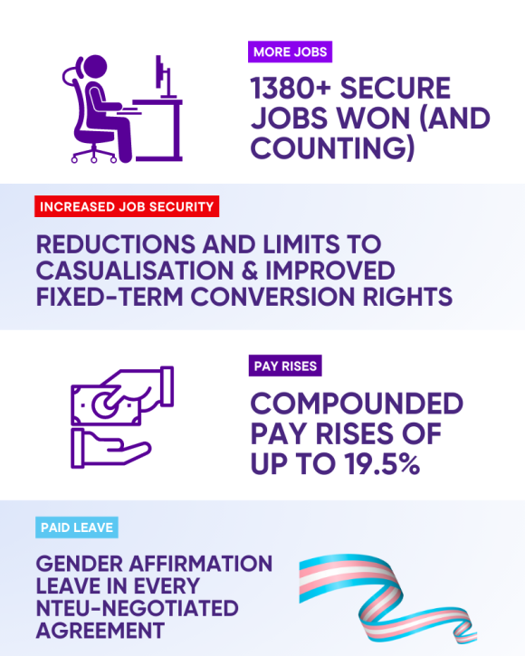 These conditions and pay rises have only been possible through union negotiations and the commitment and passion of thousands of staff working towards better workplaces and better universities.