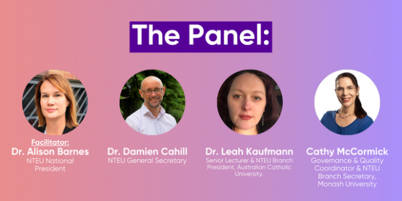 The NTEU maintains a list of names and email addresses of university staff collected from publicly available sources. The list is only used for purposes consistent with the NTEU’s objects and purpose and is not disclosed to parties outside the NTEU. If you would prefer not to receive further information from the NTEU, please click on the unsubscribe link below. For more info, please see our Privacy Statement.